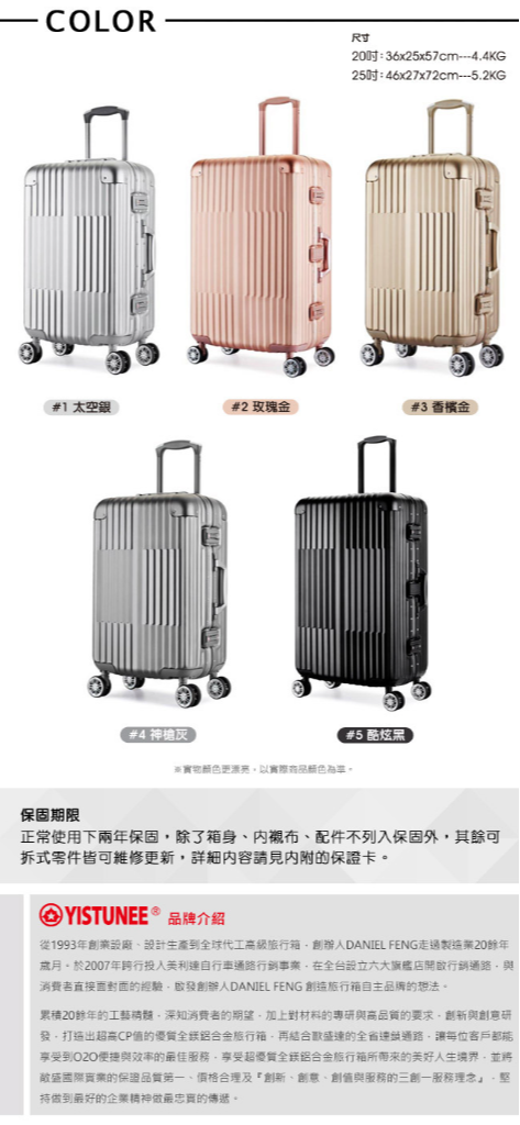 20吋 尺寸:36x25x57cm 重量:4.4kg